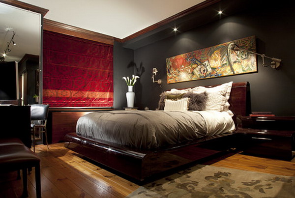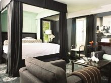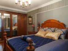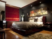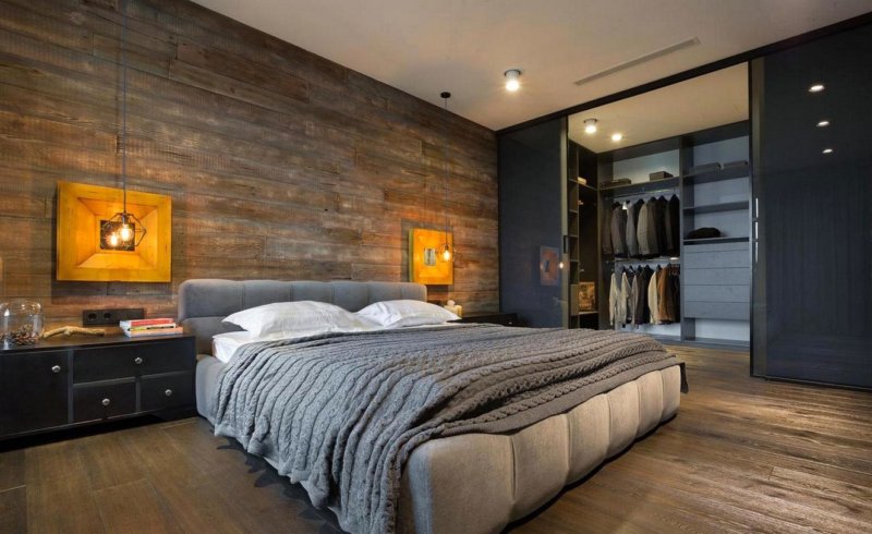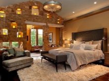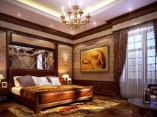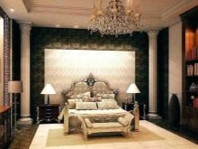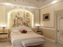 Le pareti della zona notte sono decorate in modo eccezionalmente ricco ed elegante. Nella maggior parte dei casi, viene utilizzata la tappezzeria in tessuto o l'intonaco strutturato, la carta da parati con serigrafia può essere incollata magnificamente. È consentita una combinazione di trame relative al colore e al materiale. Una buona soluzione sarebbe progettare uno strato decorativo sotto forma di pannello.