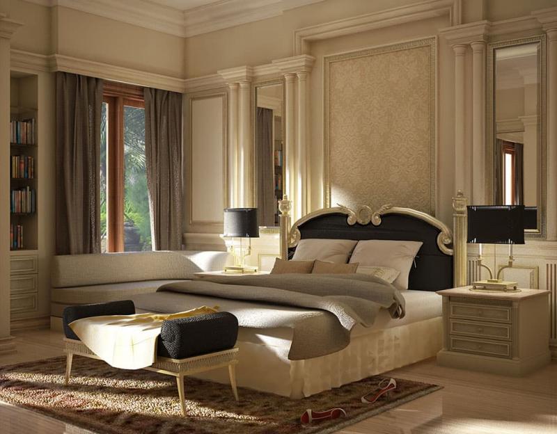 - Praticità tipica dei design moderni, arredamento moderato e linee laconiche saranno assolutamente inappropriati nel caso del classicismo nella zona notte.