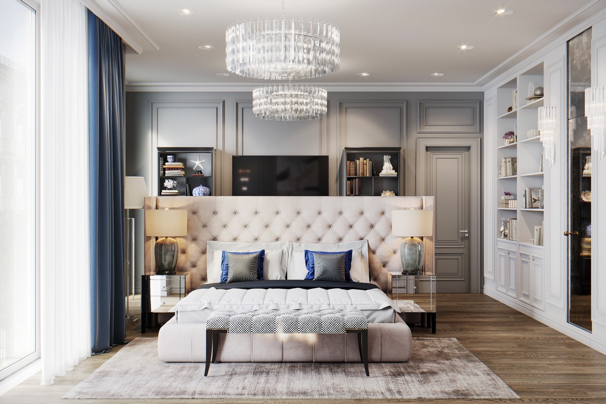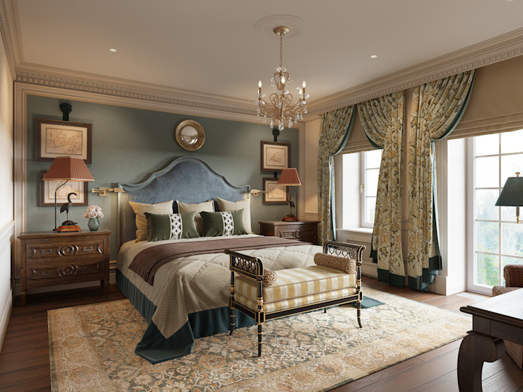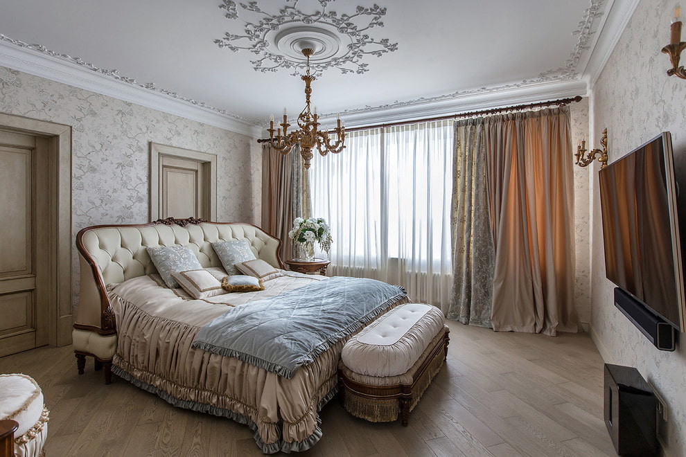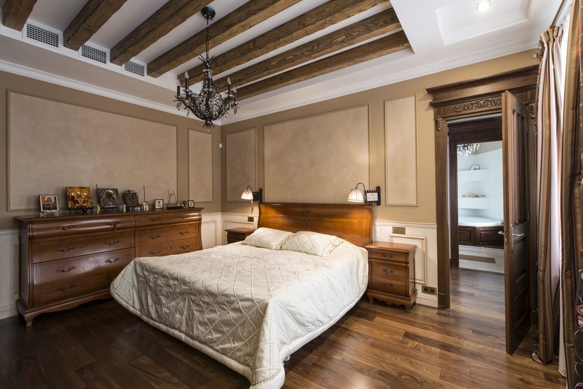 Molto spesso, i classici sono usati per decorare le camere da letto in grandi cottage, ville o appartamenti spaziosi.