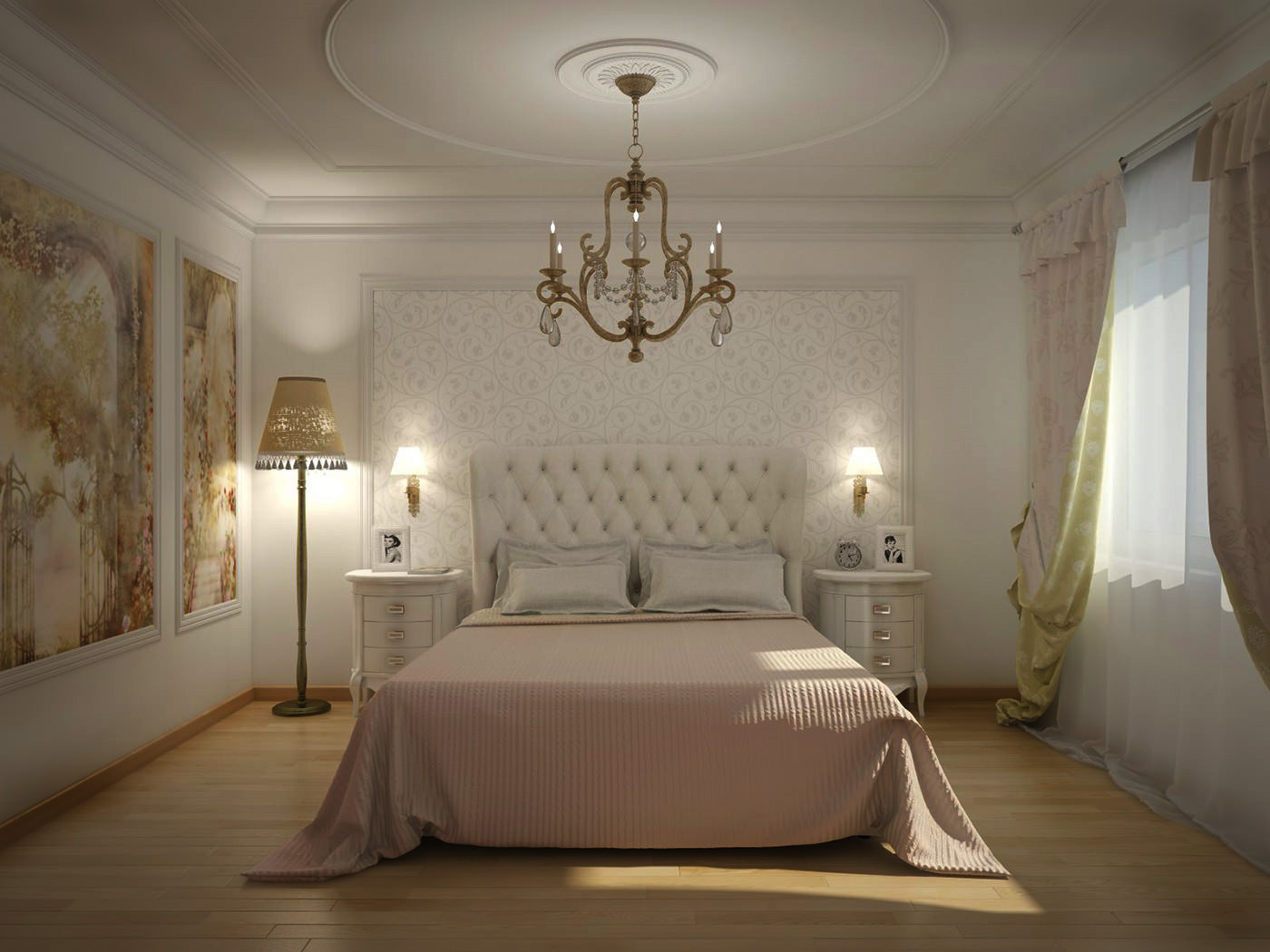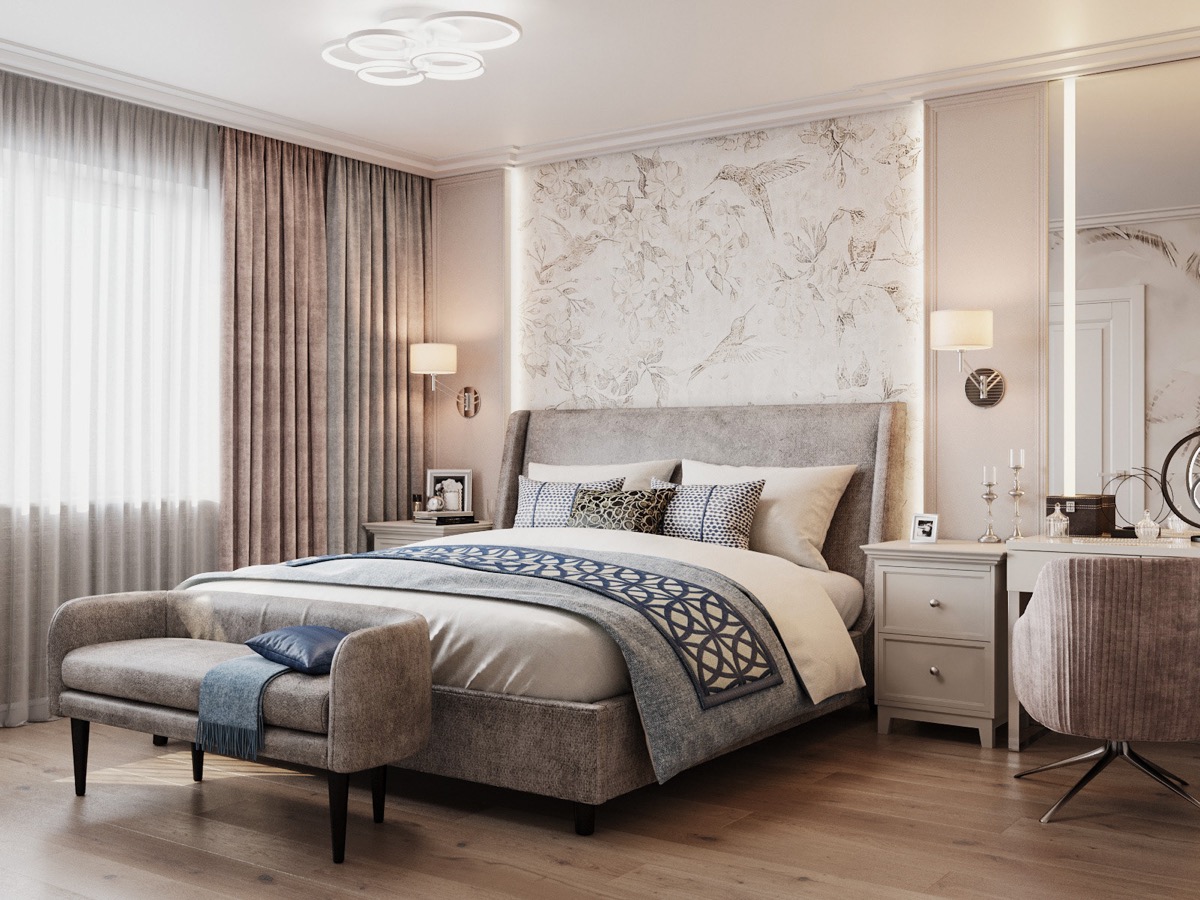 Per le camere da letto nello stile del classicismo, è disposta l'illuminazione a tre livelli.