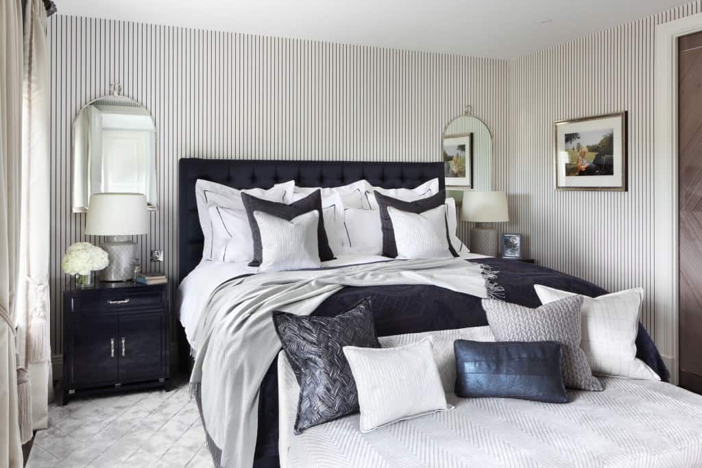 La biancheria da letto non è meno rilevante. Il classicismo assume una coperta jacquard con stampe argentate o dorate.
