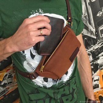 Di recente, un numero crescente di marchi ha prodotto borse a banana non solo in stile unisex, ma anche modelli che separano chiaramente per uomo e donna. Naturalmente, le differenze fondamentali si trovano principalmente nell'aspetto. Le varianti di borse da uomo sono realizzate in vera pelle, ecopelle, pelle scamosciata, vinile, tessuti. Sono loro che si consiglia di dare la preferenza ai sintetici.