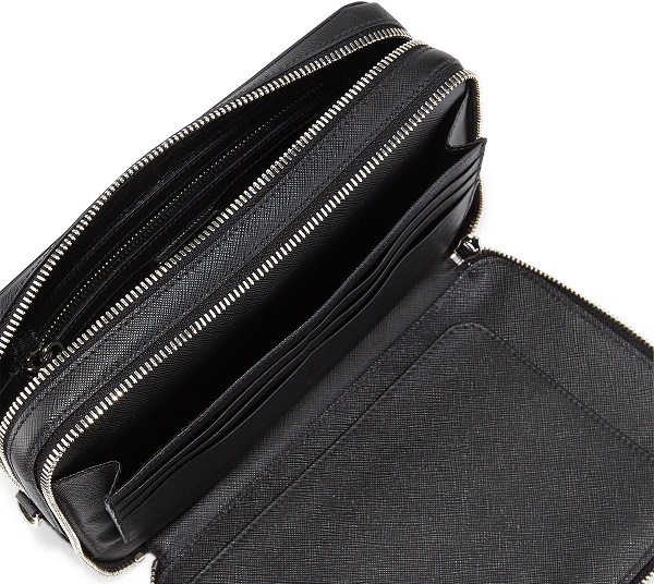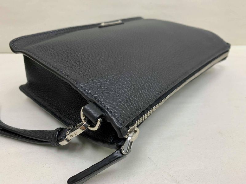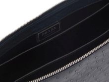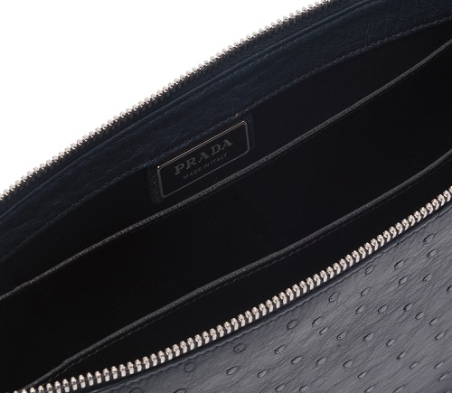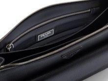 La pochette da uomo Prada in vera pelle nera è sempre molto richiesta. La caratteristica principale di questa versione del prodotto è la presenza di una serratura con chiave. All'interno lo spazio è suddiviso in 3 scomparti.