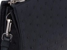 C'è una piccola tasca per un telefono cellulare, 6 scomparti per carte di credito e biglietti da visita. La maniglia ad anello può essere staccata se necessario. La confezione include una fodera in tessuto per riporre il prodotto.