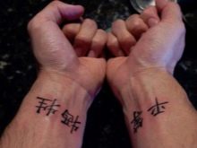 Allo stesso tempo, con un tatuaggio del genere, devi sempre agire con attenzione. È consigliabile conoscere la traduzione letterale, in modo da non mettere sul corpo parole o frasi insignificanti, nonché un'iscrizione che abbia il significato opposto a quello previsto.