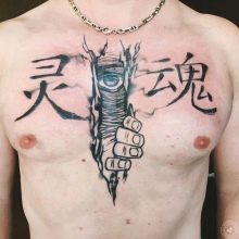 I tatuaggi maschili sotto forma di geroglifici sono spesso scelti da coloro che sono vicini alla cultura orientale. E queste possono essere diverse opzioni. Mentre alcuni conducono lo stile di vita di un samurai, cercando di non deviare dal codice del guerriero in nulla, altri amano la filosofia cinese, e altri ancora amano la poesia giapponese. Pertanto, per ogni geroglifico porterà il proprio significato individuale, questa è la loro caratteristica. Ognuno può esprimere ciò che vuole. Allo stesso tempo, il significato di ciò che è stato scritto può essere un mistero completo per gli altri, e può anche aprire leggermente il velo di segretezza. Per fare ciò è sufficiente affiancarvi la traduzione o integrare ciò che è stato scritto con una sorta di immagine.
