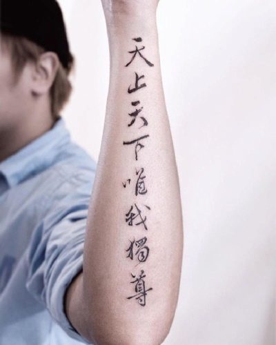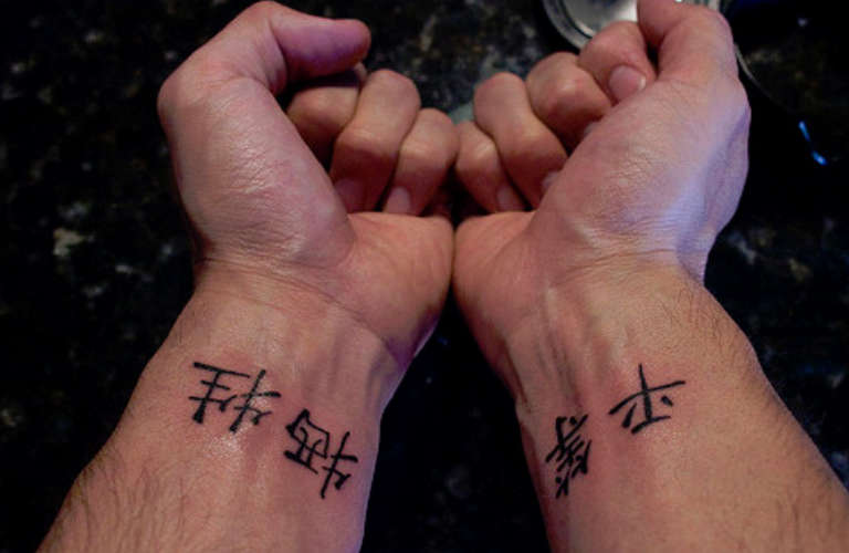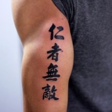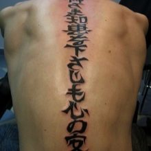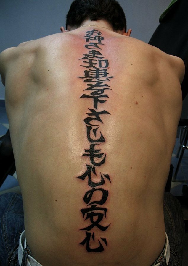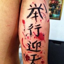Vale anche la pena scegliere un vero professionista e preferibilmente uno che abbia esperienza nell'applicazione di tali tatuaggi. Devi agire con molta attenzione, perché anche un trattino applicato in modo errato può cambiare la lettera, e quindi il significato, o privare completamente la parola di significato, e questo sarà un insieme di lettere. Certo, non tutti conoscono le lingue giapponese e cinese, ma nemmeno un uomo vuole mettersi in una posizione imbarazzante. Pertanto, vale la pena avvicinarsi alla scelta di tali tatuaggi con particolare attenzione.