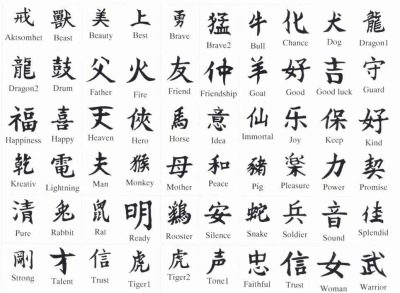 A volte i geroglifici sono integrati con simboli Yin e Yang o un ramo di sakura, che è molto in sintonia con le culture cinese e giapponese. Alcune persone scelgono l'intero detto filosofico di un saggio. Può riflettere il credo di una persona nella vita, il suo atteggiamento nei confronti della vita o semplicemente sintonizzarsi nell'umore giusto. Anche i segni dello zodiaco, che sono raffigurati sotto forma di geroglifici, sono popolari.