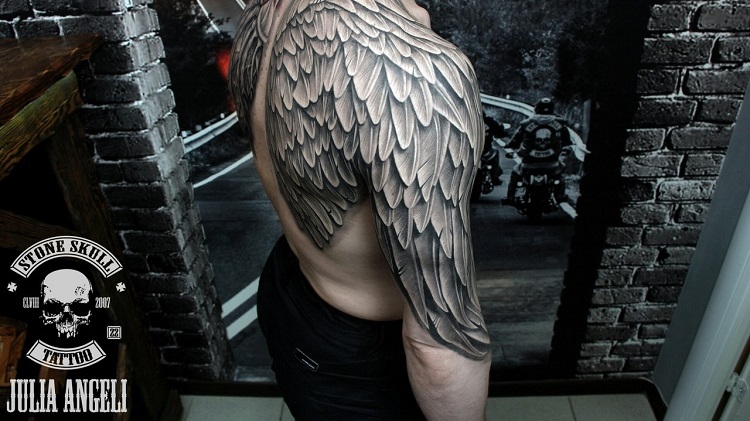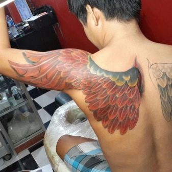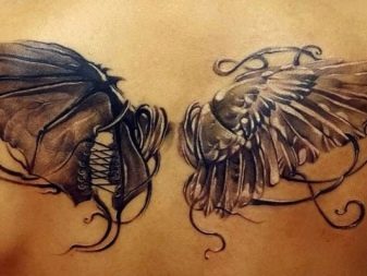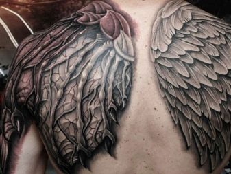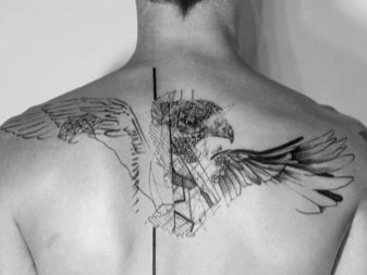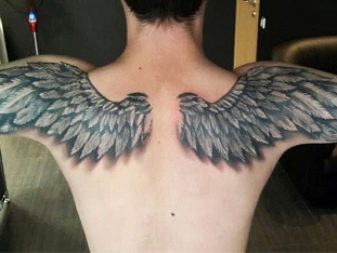 Ci sono moltissimi schizzi interessanti e creativi di tatuaggi maschili. Diverse immagini sono conservate in diversi stili e variazioni di colore. Tra gli uomini, il tatuaggio a forma di ali è molto popolare. Il più delle volte è posizionato sul retro, sembra molto impressionante... La versione considerata della body art maschile può implicare una varietà di significati e idee. I più famosi e comuni sono la perdita di una persona cara e il desiderio di essere protetti.