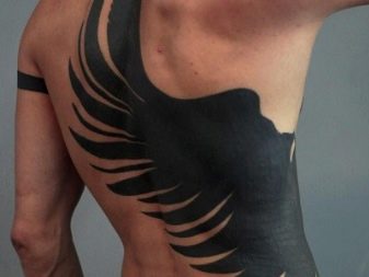 Il tipo considerato della composizione originale può essere caratterizzato da un'ampia varietà di prestazioni. Possono essere ali o un angelo, un uccello o un pipistrello: ci sono molte opzioni. In generale, tale body art maschile personifica molto spesso: