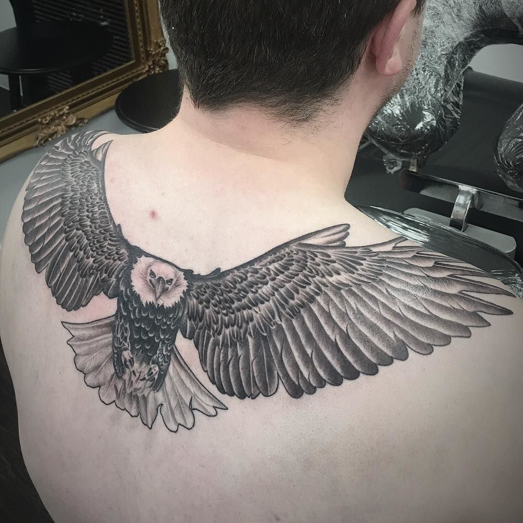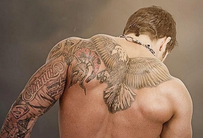 Sul retro di un uomo, le ali d'aquila sembrano particolarmente brutali e coraggiose. L'aquila è un uccello molto maestoso e potente. Ciò suggerisce che i significati del tatuaggio sono forza, potere, nobiltà, mente sottile e saggezza.