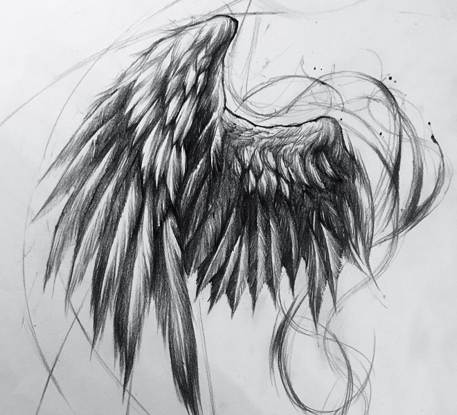 - Grafica... L'immagine delle ali, realizzata secondo lo stile specificato, sarà mantenuta principalmente nei colori neri. Per questo motivo, i disegni grafici assomigliano alle incisioni, sembrano interessanti.