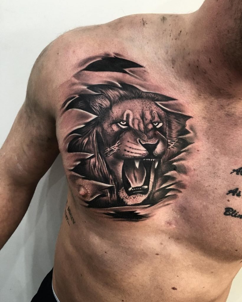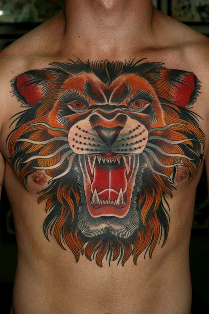Tutto sui tatuaggi del leone sullo sterno maschile