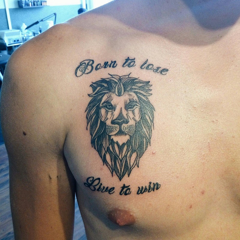 Prima di applicare un tatuaggio, devi scegliere un buon salone e un artista professionista, soprattutto se hai intenzione di realizzare un disegno di grandi dimensioni. La posizione del leone è determinata dal desiderio del cliente stesso. Il muso dell'animale può essere applicato sul lato sinistro o destro del torace, al centro. Alcuni modelli occupano l'intero sterno e alcuni scendono o salgono, catturando l'addome, l'area delle clavicole e le maniche. E devi anche capire che la creazione di immagini volumetriche richiede molto tempo. Dovrai venire ripetutamente dal maestro e il periodo di guarigione può durare un mese o più. Un tatuaggio prima del suo aspetto finale può sembrare antiestetico.