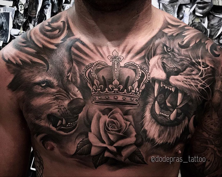 I tatuaggi del leone dello sterno da uomo sono popolari da molti anni.... I popoli antichi spesso personificavano i leoni con gli dei e le caratteristiche di questo animale apparivano in molte creature mitiche, ad esempio chimere o sfingi. In Cina questo animale significava potere, mentre nel buddismo i leoni erano considerati protettori. C'è un tale simbolo nella religione cristiana, ma qui può essere interpretato in due modi. Da un lato, il leone è un vero sovrano, il re degli animali, che si distingue per coraggio e forza. Ma d'altra parte, questo stesso potere può anche abbagliare.