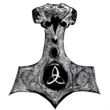 Allo stesso tempo, notiamo che la posizione del martello è di grande importanza per l'interpretazione di un tale modello. Se è con la parte che colpisce, allora questo simboleggia stabilità e stabilità: queste sono le qualità che sono caratteristiche di una persona che ha fiducia in se stessa e nei suoi principi e non segue la guida degli altri. Ma Mjolnir, situato in un angolo, simboleggia l'aggressività, l'astuzia e il pericolo.
