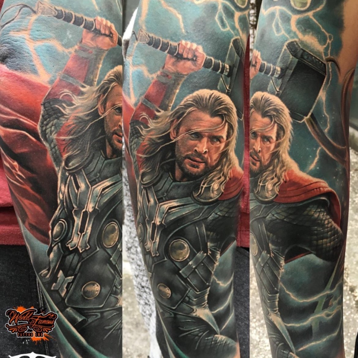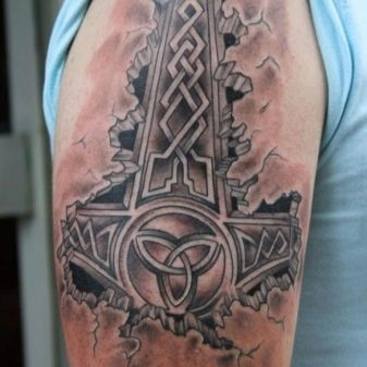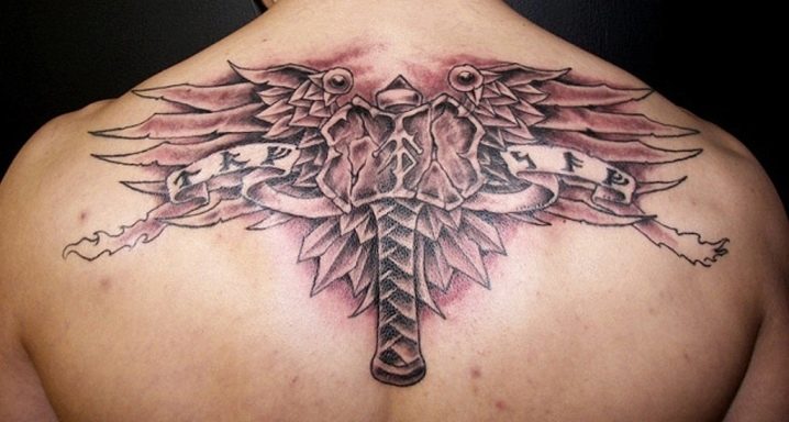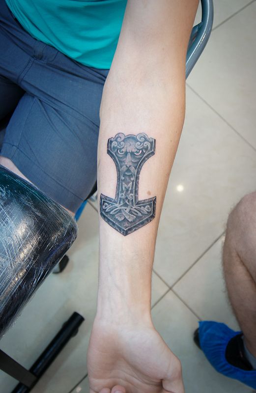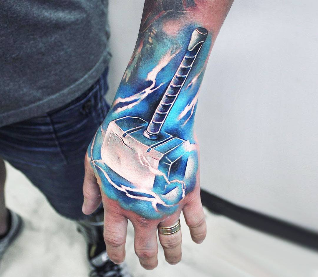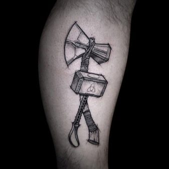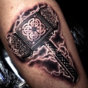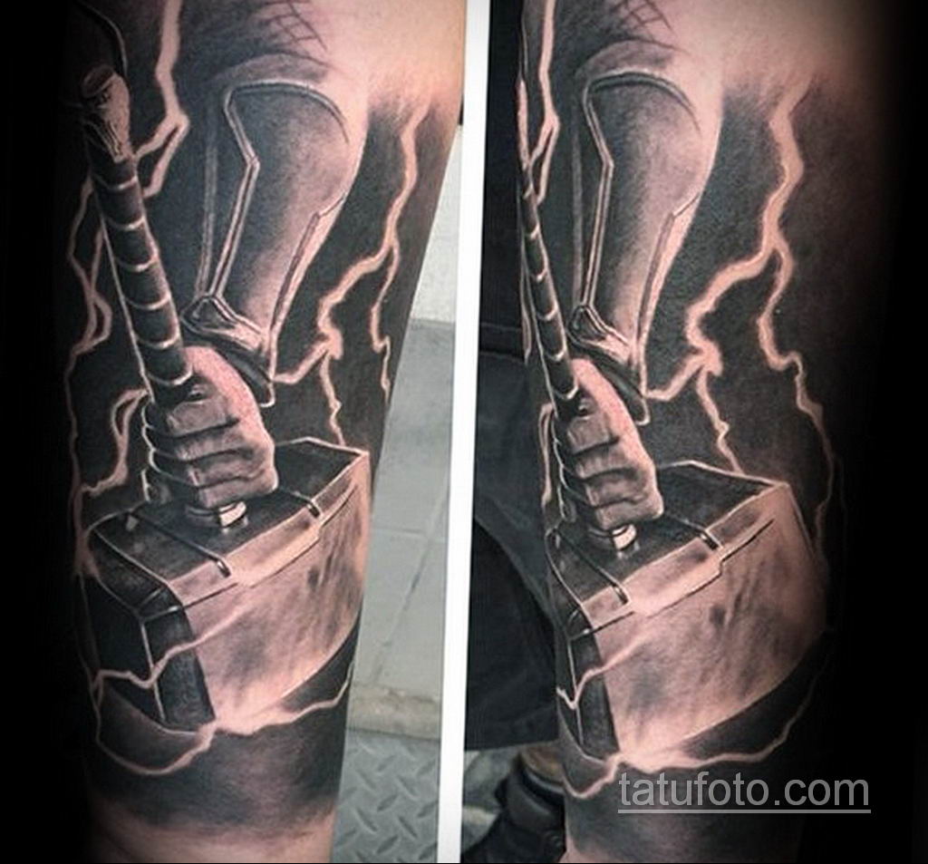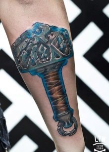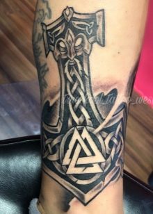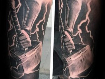 I tatuaggi sono molto interessanti, dove il martello frantumatore è nelle mani del suo proprietario Thor. L'immagine di questa divinità può essere presa sia da film popolari sui supereroi della Marvel, sia dalla mitologia.