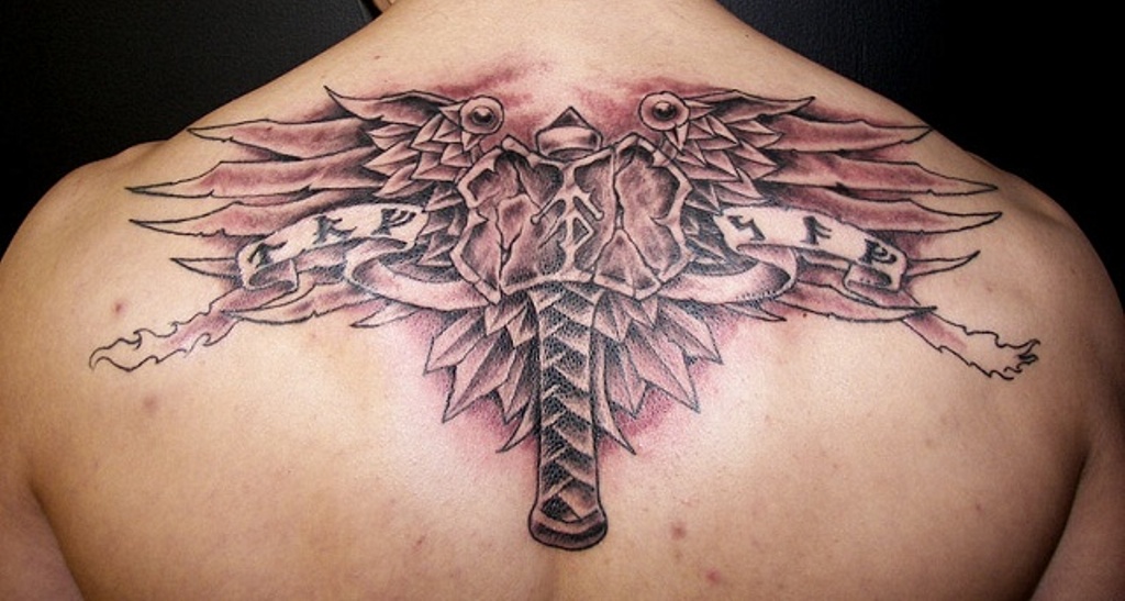 Tali varianti di tatuaggi non sembrano meno interessanti, dove ci sono due ali dietro Mjolnir. Un tale tatuaggio simboleggia non solo la forza, ma anche il desiderio di libertà in tutte le sue comprensioni.