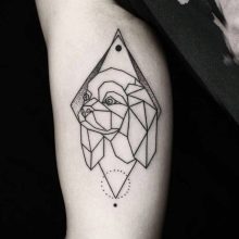 Tali tatuaggi sotto forma di animali (lupi, orsi, cervi, uccelli) sembrano spettacolari. Sono disegnati usando linee rette e sottili. Il risultato è un disegno schematico pulito.