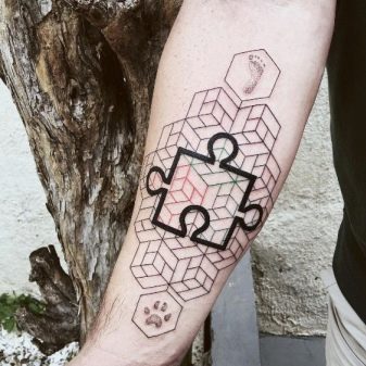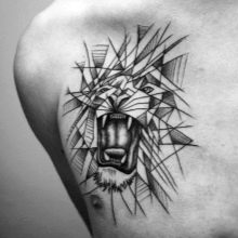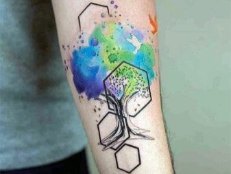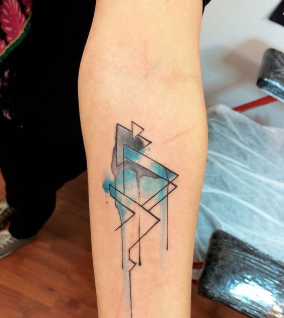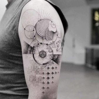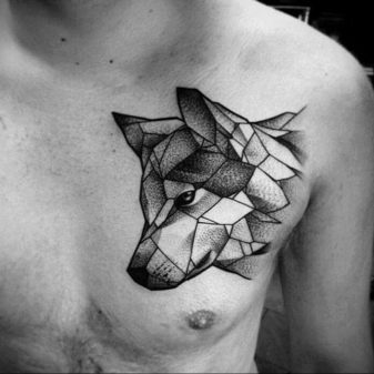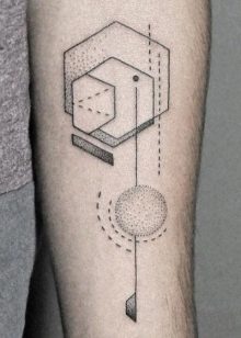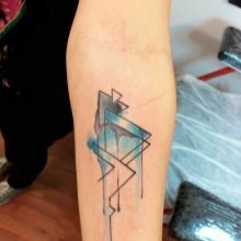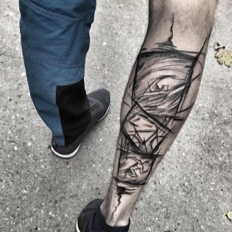 Una buona opzione sarebbe astrazione nello stile della geometria. Può essere realizzato in bianco e nero o a colori. Non ci sono significati chiari in tali tatuaggi.