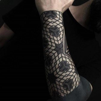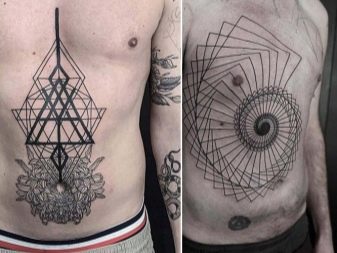 - Grandi tatuaggi. Grandi tatuaggi geometrici con enormi ornamenti si adattano a quasi tutti gli uomini. Nonostante le dimensioni piuttosto grandi, tali immagini indossabili appariranno organiche ed efficaci. Molto spesso sono imbottiti sul petto e sulle braccia. Sono caratterizzati da un ornamento complesso e dettagli speciali.