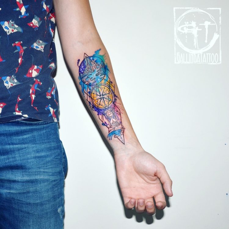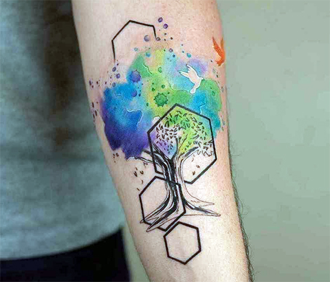 I tatuaggi maschili geometrici possono essere realizzati in una varietà di colori.
