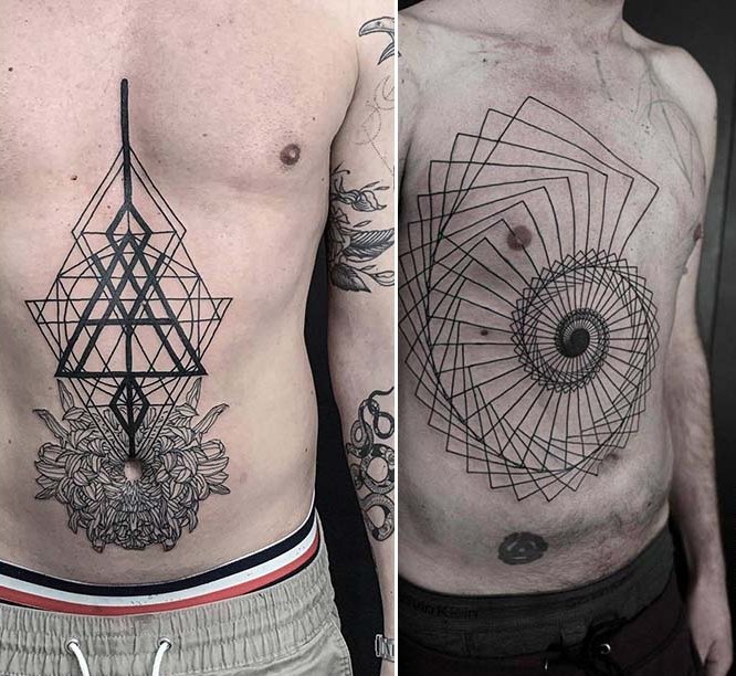 I tatuaggi geometrici per uomo possono essere realizzati in vari stili.