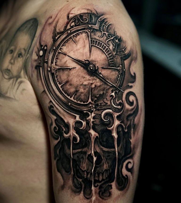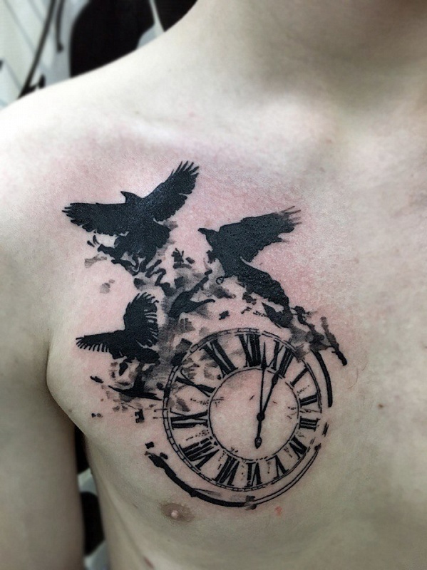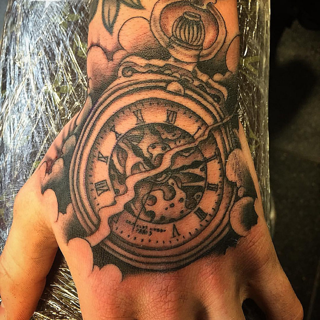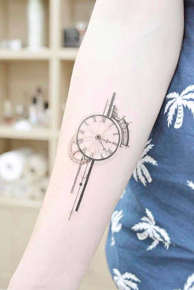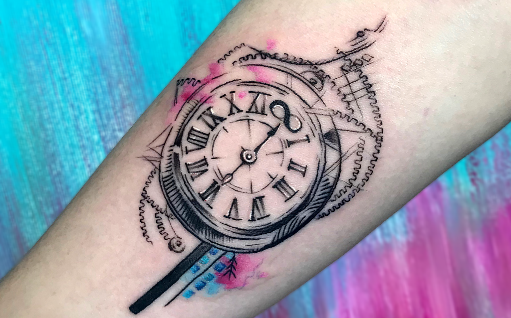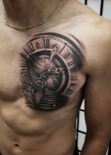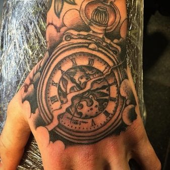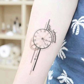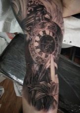 - Quindi, inizialmente, un tatuaggio a forma di orologio può simboleggiare il rapido flusso della vita umana e del tempo in generale. Un tatuaggio indica il valore del tempo per una persona: questo è il suo significato principale. La vita di una persona può finire in qualsiasi momento per l'incidente più ridicolo, e quindi è necessario apprezzare ogni momento, riempiendolo di vivide emozioni. Il significato simile di un tale disegno era particolarmente rilevante nell'antica cultura greca. Lì, l'immagine di un cronometro, un orologio con un movimento particolarmente preciso, era spesso considerata un simbolo degli dei che governavano i destini umani, tra cui Zeus, Themis ed Helios.