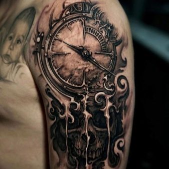 I tatuaggi dell'orologio per gli uomini possono essere eseguiti in un'ampia varietà di stili. La maggior parte degli uomini preferisce le opzioni di tatuaggio in bianco e nero, perché sembrano più rigorose e sobrie, indicando così il carattere del loro proprietario. Tuttavia, i tatuaggi colorati sono anche popolari tra i maschi. Spesso, tali disegni enfatizzano il positivo del loro proprietario e la sua originalità.