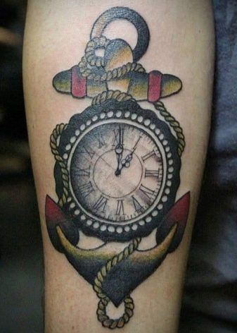 - La combinazione dello stesso orologio e ancora su un tatuaggio indicherà il desiderio di stabilità di una persona, perché è in esso che risiede la sua forza. E la presenza di pietre preziose nell'orologio indicherà che una persona sta attivamente cercando di trovare il significato della vita, la strada giusta e realizzare pienamente il suo scopo.
