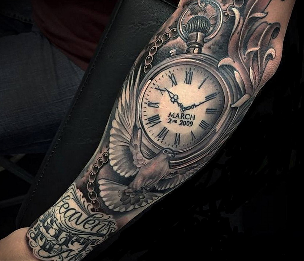 Puoi posizionare un tatuaggio raffigurante un orologio su qualsiasi parte del corpo, che si tratti di un braccio, schiena, spalla o avambraccio, manica o sterno. Si consiglia di scegliere l'area di applicazione in base alle dimensioni dell'immagine e alle sue caratteristiche compositive.