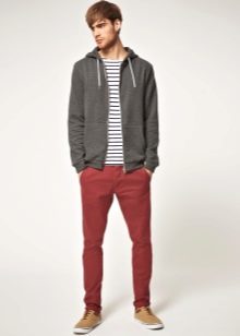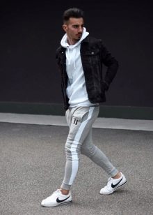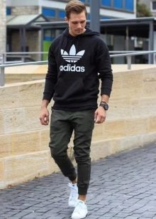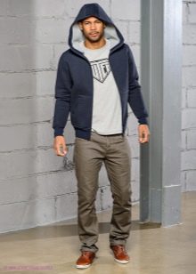 Le felpe e le felpe firmate si abbinano bene agli outfit casual. Uno dei vantaggi dei modelli è il loro stile, più vicino a quello sportivo. I pantaloni classici con le frecce qui, ovviamente, non sono appropriati. È meglio combinare il top con jeans, pantaloni di tweed. Una camicia, un dolcevita o una maglietta è adatta per il fondo.