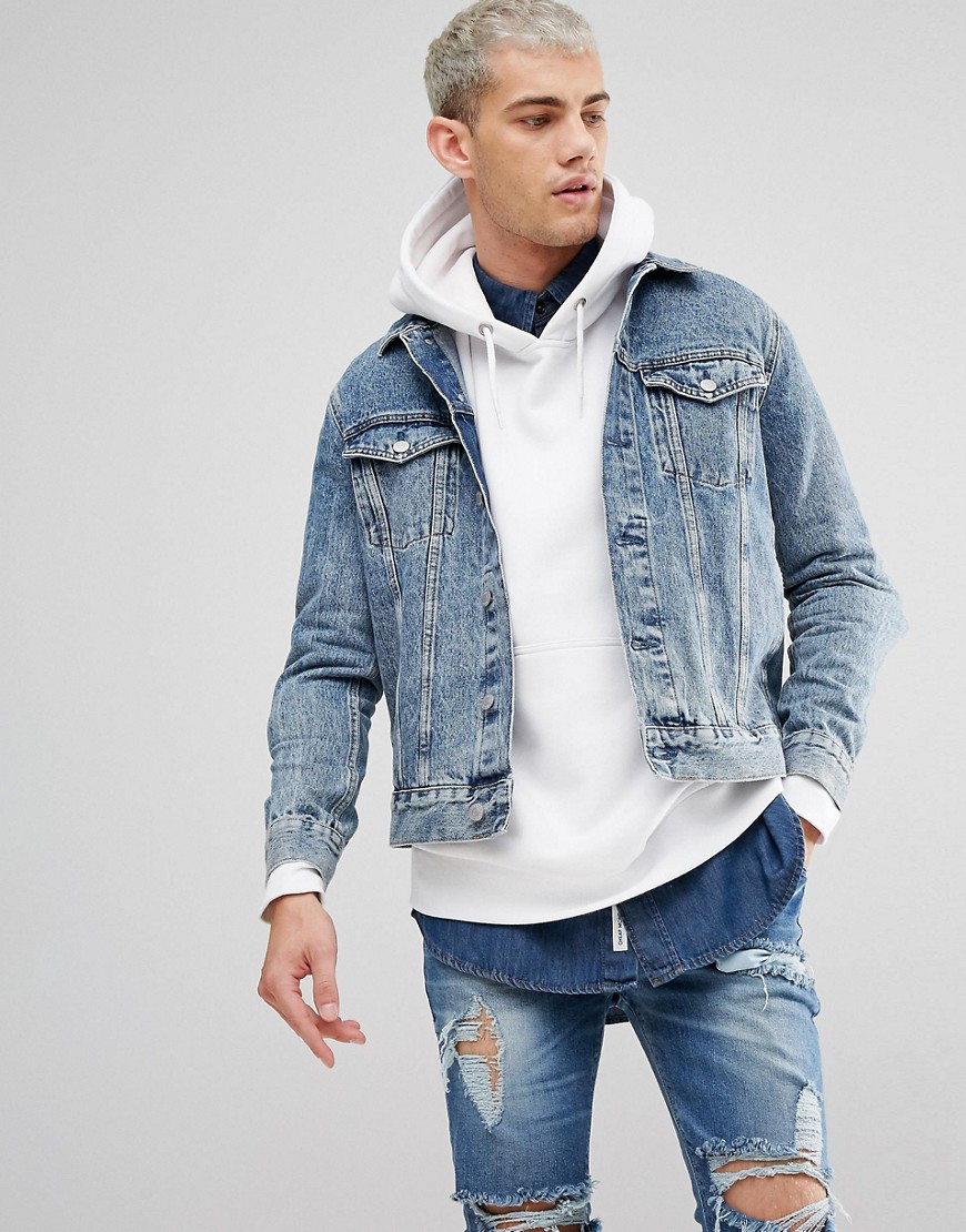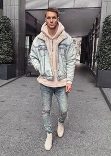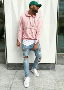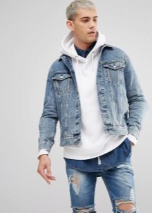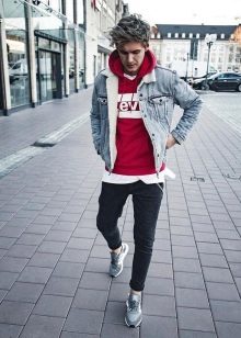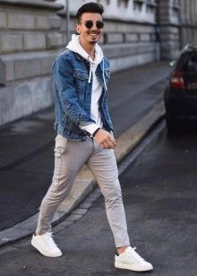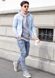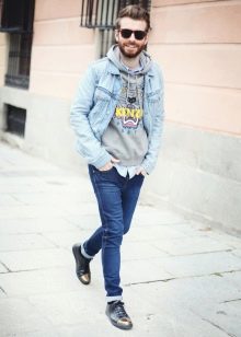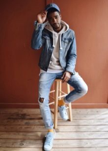- Un fiocco per una fresca estate. In questo caso l'attenzione è puntata su una felpa in jersey sottile, oltre a jeans scuri e una giacca di jeans. Completano il look le sneakers dai colori chiari.