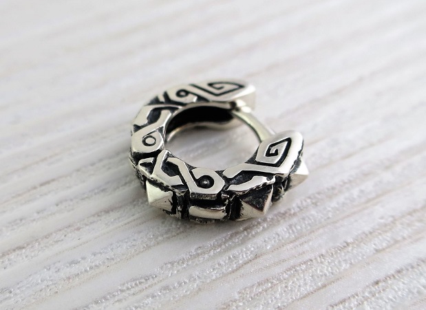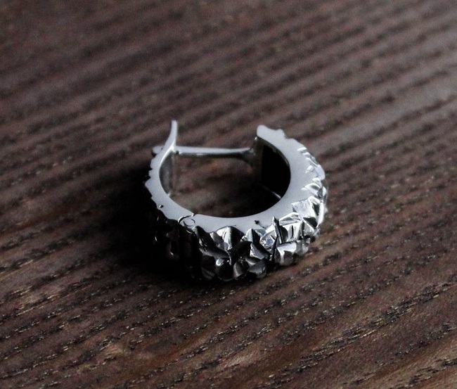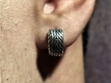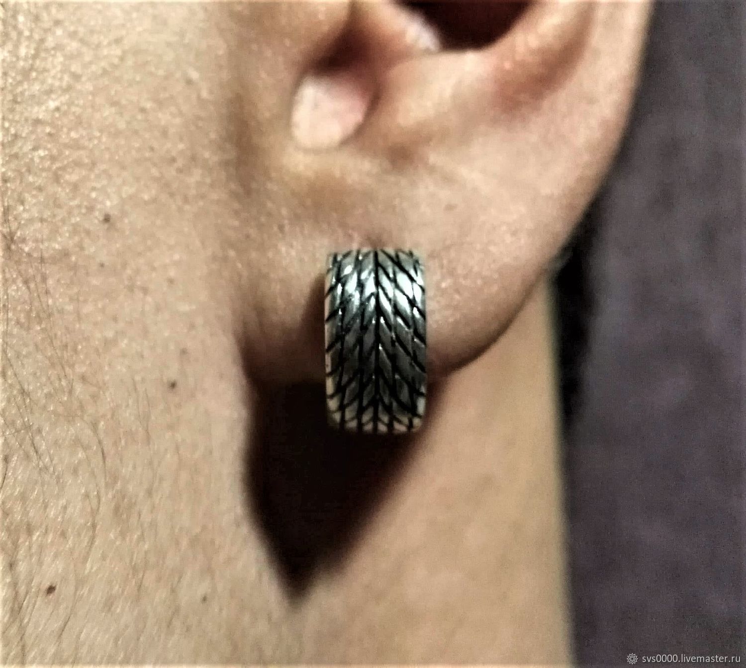 - D'argento - un metallo nobile economico, ma molto popolare utilizzato per realizzare una varietà di gioielli. Gli orecchini in argento da uomo sono articoli carismatici, durevoli ed economici resistenti ai graffi e alla deformazione. Lo svantaggio di questo metallo è la sua proprietà di scurirsi nel tempo. I gioielli in argento perdono rapidamente la loro lucentezza senza una manutenzione regolare, diventando marrone sporco o quasi nero.