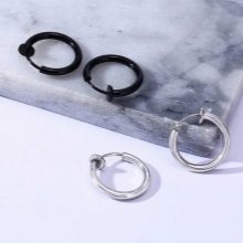 Gli orecchini a cerchio da uomo moderni differiscono sia per spessore che per diametro. Possono essere sottili o massicci, lisci o goffrati, pieni o aperti, semplici o decorati. Molto popolari tra gli uomini moderni di età giovane e matura sono orecchini-congodi piccole dimensioni, nonché un profilo interno tondo, a forma di D o quadrangolare.