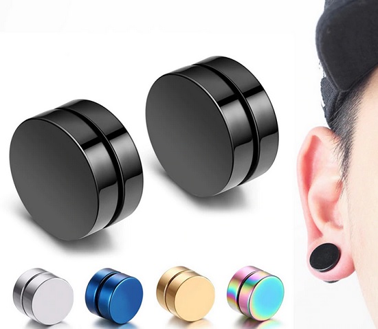 Indossare orecchini magnetici non richiede un piercing attraverso il lobo dell'orecchio. Molto spesso, uno di questi orecchini è costituito da due piastre magnetiche cilindriche, che possono essere facilmente fissate sul bordo del padiglione auricolare. Il lato anteriore di una delle piastre magnetiche è spesso decorato con un design accattivante, scritte, incisioni o motivi.