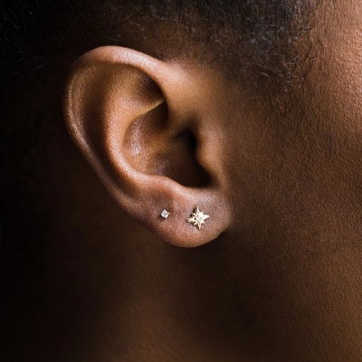- Per i giovani che preferiscono l'abbigliamento sportivo o lo stile casual pratico, i designer consigliano di prestare attenzione agli orecchini aggraziati della forma originale. Ad esempio, ecco un'interessante decorazione a forma di stella a cinque punte in argento annerito. Il prodotto è dotato di un perno che permette di fissare saldamente l'orecchino sul lobo dell'orecchio.