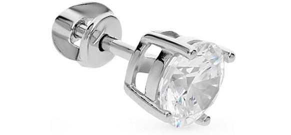 - Per creare un look romantico, un classico orecchino a bottone decorato con un grande diamante è l'ideale. Un tale ornamento completerà con successo un abito da uomo festivo in uno stile classico, ad esempio un abito da sposa o da club.