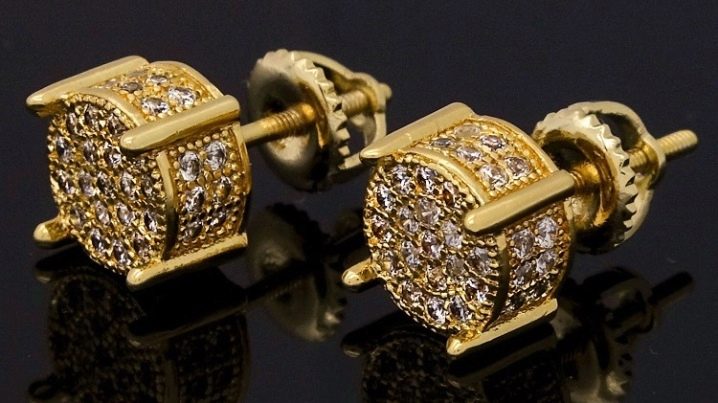 - Oro - il metallo nobile più popolare utilizzato per realizzare orecchini da uomo. È consuetudine riferirsi ai vantaggi dei gioielli in oro non solo una lucentezza nobile e un aspetto attraente, ma anche ipoallergenicità, leggerezza, resistenza all'ossidazione e alla corrosione. Il lato negativo dell'oro è la sua morbidezza, suscettibilità alla deformazione.
