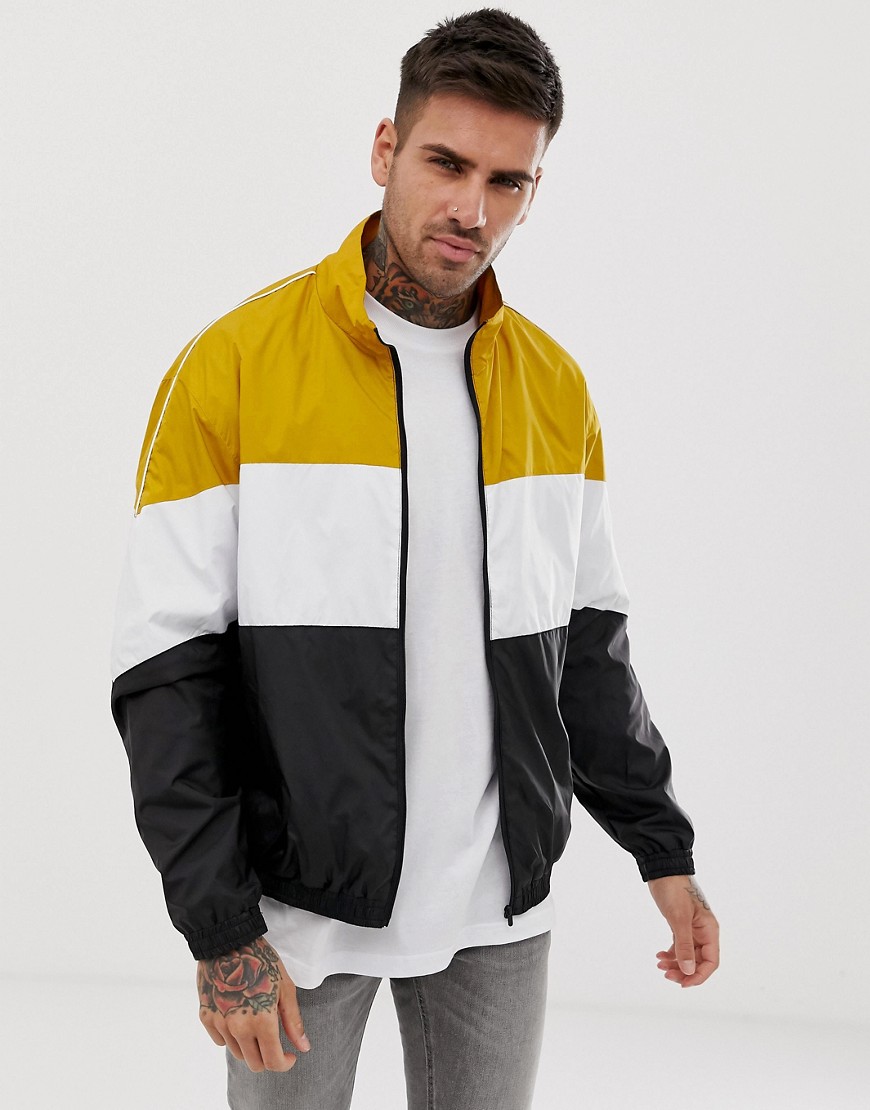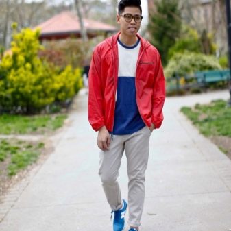 Le giacche a vento sportive stanno bene in un look casual, ma in questo caso il modello dovrebbe avere un taglio laconico e una tonalità discreta.