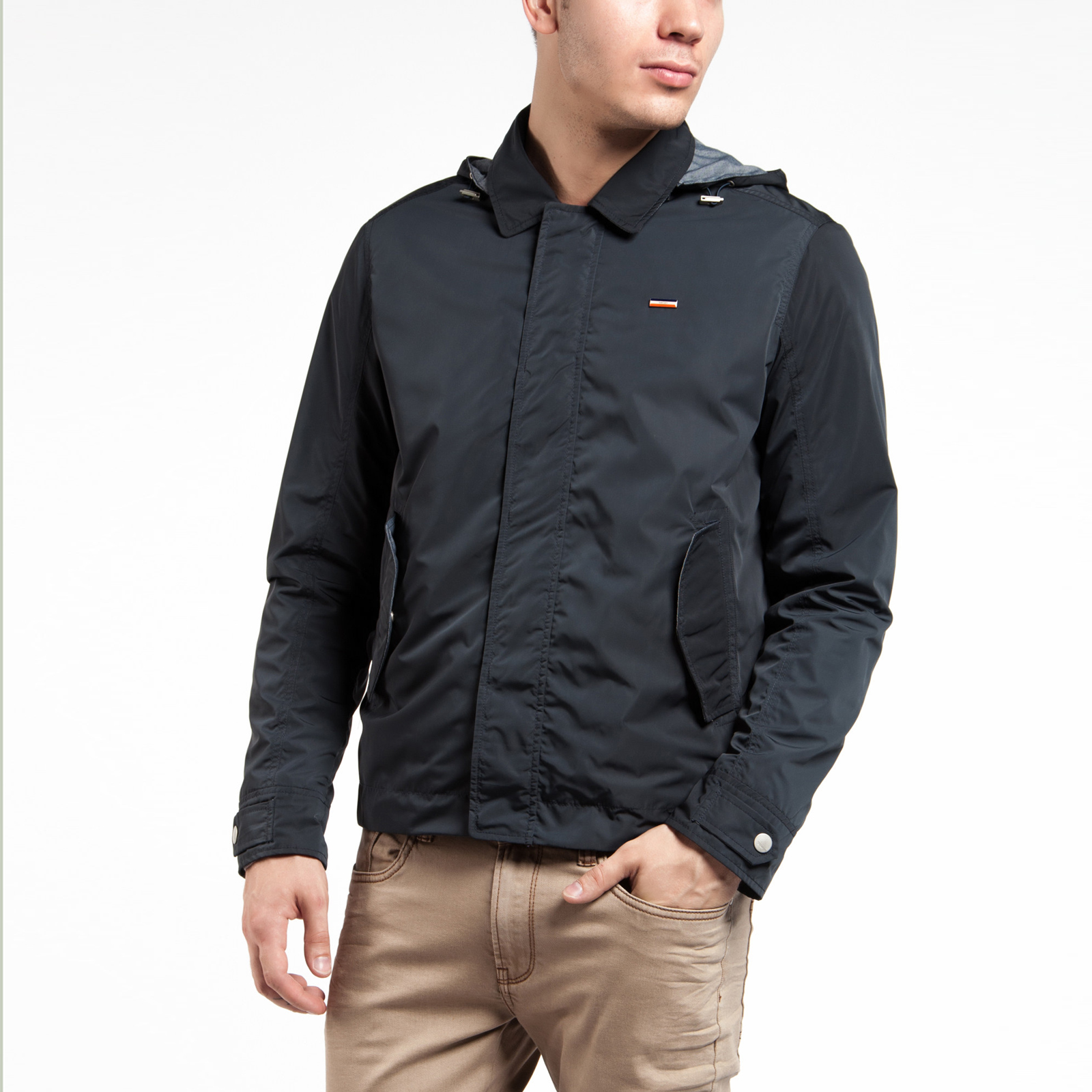 - Dai la preferenza ai prodotti con cappuccio.È improbabile che un uomo utilizzi una giacca a vento sportiva esclusivamente per lo sport, molto probabilmente la indosserà per una passeggiata, e qui il cappuccio può aiutare abbastanza bene se piove improvvisamente o soffia un forte vento. Inoltre, nella maggior parte dei modelli, il cappuccio può essere sganciato.