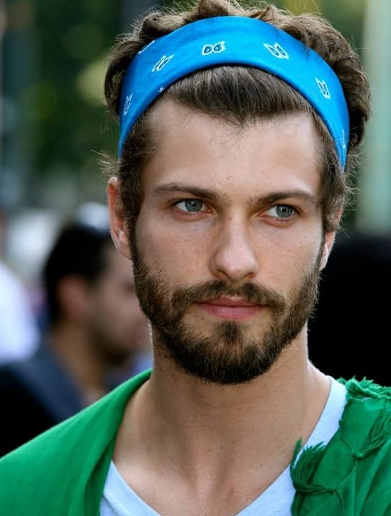 Gli uomini atletici con acconciature da medie a maxi spesso indossano fasce per la testa. Questo accessorio aiuta a rimuovere i peli durante un allenamento o un lavoro attivo. Il cerchio è utilizzato da molti uomini, preferendo le classiche opzioni nere. Ci sono opzioni larghe, strette o primaverili.