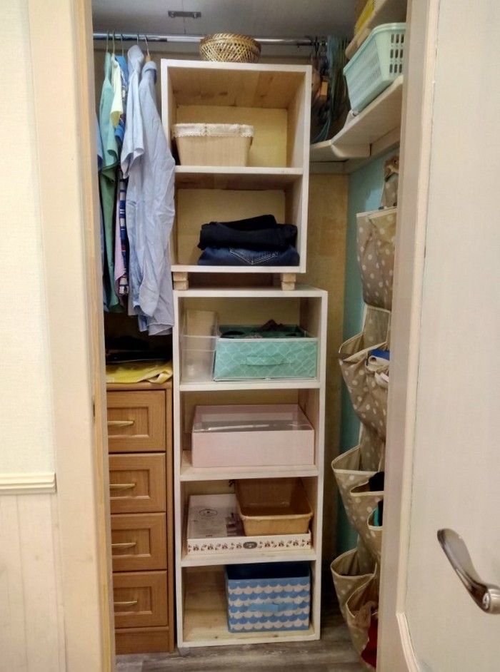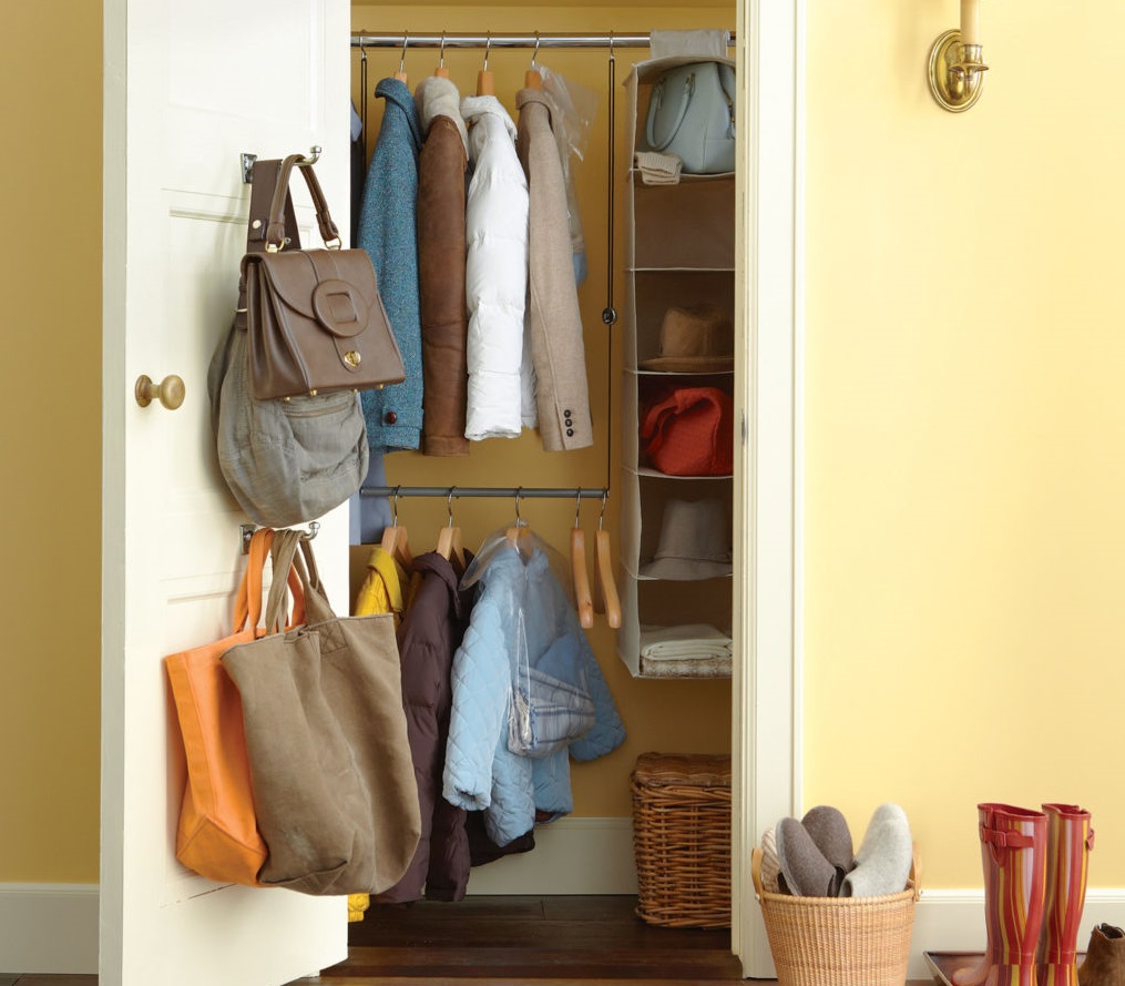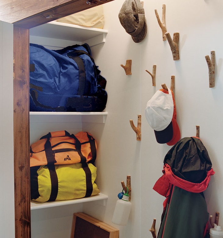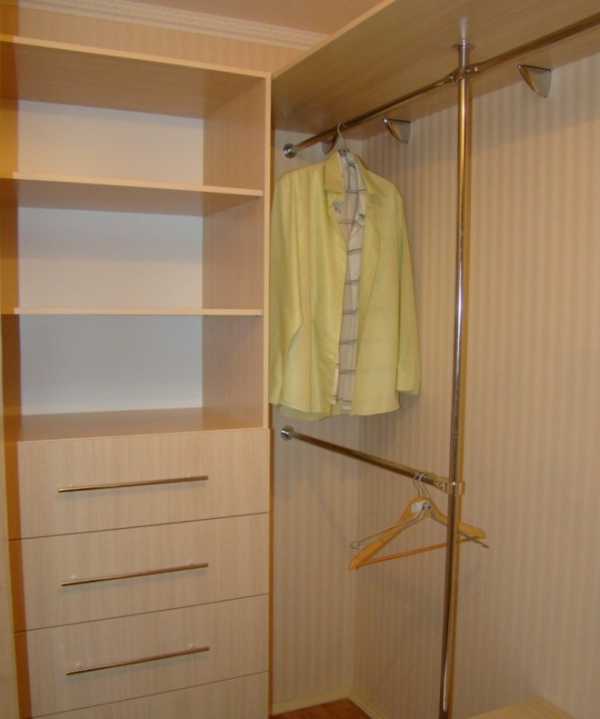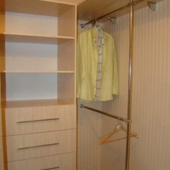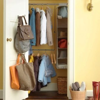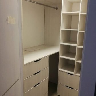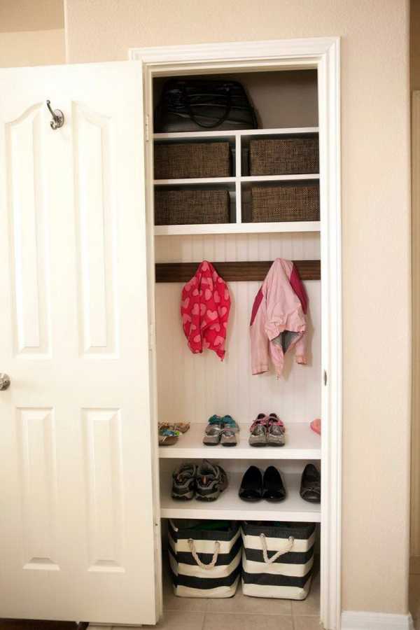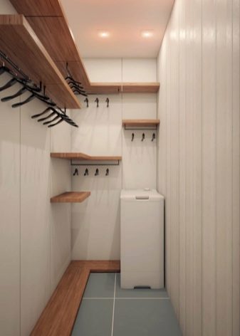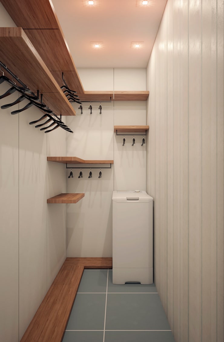 Quant à l'espace intérieur, il peut être aménagé à votre guise. Bien entendu, pendant le processus de réparation, il est recommandé de poser la hauteur des étagères à partir de 1,2 mètre, ainsi qu'un support pour cintres. Des étagères avec de l'espace pour ranger les vêtements d'extérieur seront un excellent ajout.