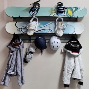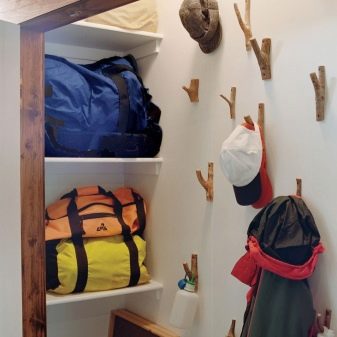 La partie centrale convient aux étagères peu profondes d'une largeur allant jusqu'à 40 centimètres. Ils peuvent accueillir des paniers à linge, des outils, de la vaisselle. Le haut du garde-manger doit être occupé par des mezzanines ou des barres, qui conviennent pour ranger les vêtements d'extérieur, les jouets du Nouvel An et d'autres objets rarement utilisés. L'espace libre sur les murs peut être pris avec des crochets pour les rouleaux, les traîneaux ou les planches à roulettes.