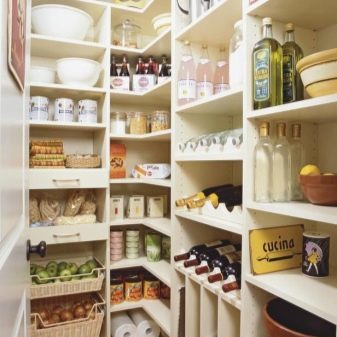 Avant d'équiper l'espace garde-manger, vous devez décider à l'avance pour quoi l'utiliser. S'il n'y a pas de garde-manger dans le projet, cela peut être fait dans le coin de la cuisine. En règle générale, un espace lui est alloué, en fonction de la superficie totale du logement.
