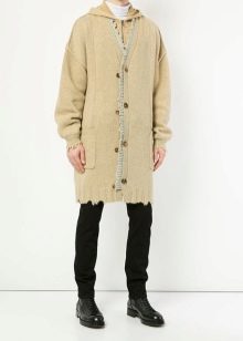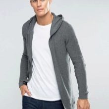 Le cardigan est une veste-manteau à manches longues. Dans la version classique, il s'agit d'une fermeture sur le devant, mais les designers modernes ont proposé des options élégantes sans fermeture à glissière. La solution optimale par temps frais et pluvieux sera les cardigans à capuche. De tels produits économisent hors saison, tout en étant très impressionnants.