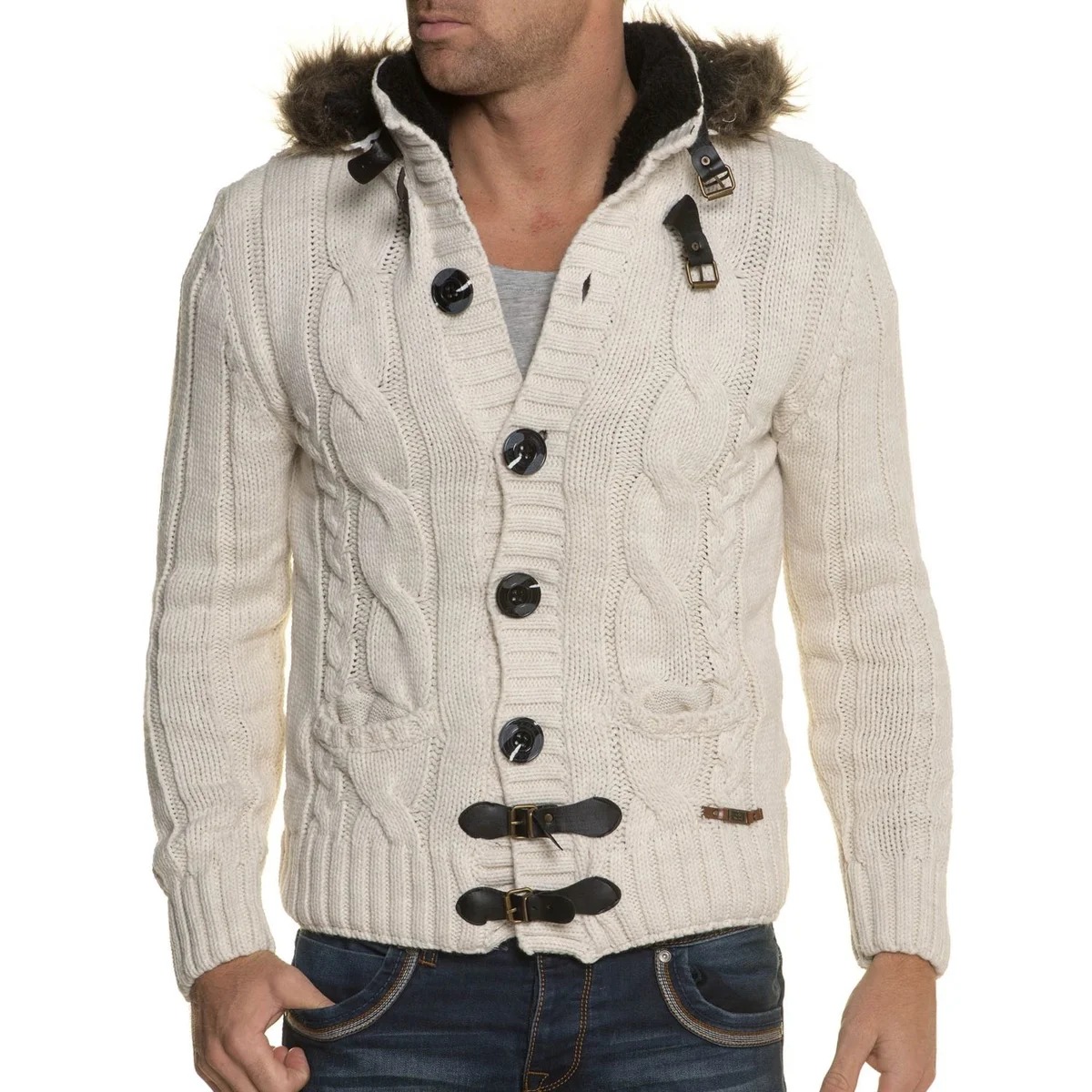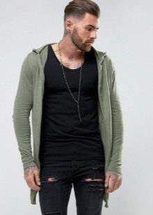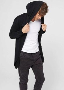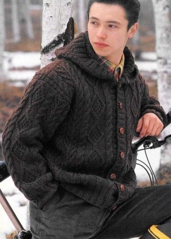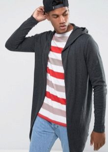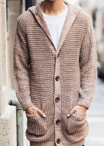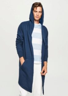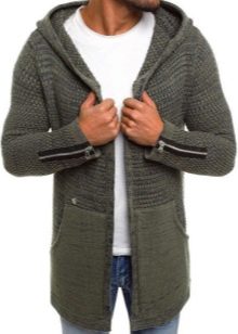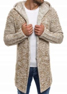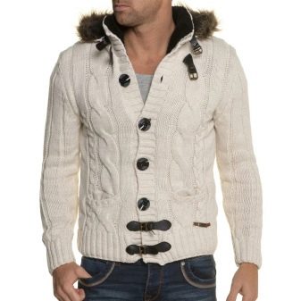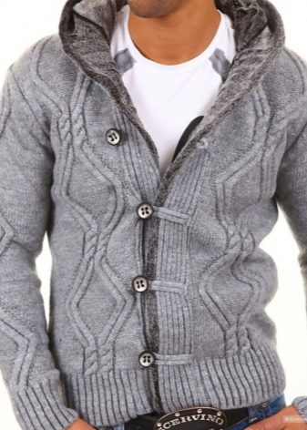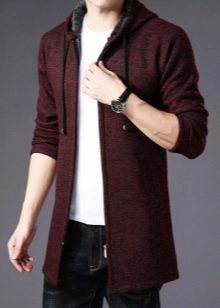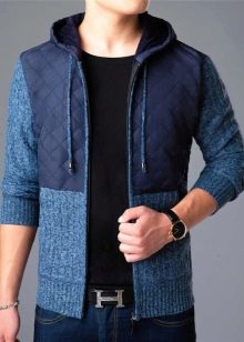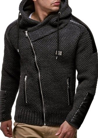 Important! Les cardigans à capuche en tissus mélangés sont très appréciés des hommes. Les modèles tricotés, complétés par des manches en cuir, sont invariablement impressionnants. Les produits en denim avec coutures en fourrure sont au sommet de la popularité.