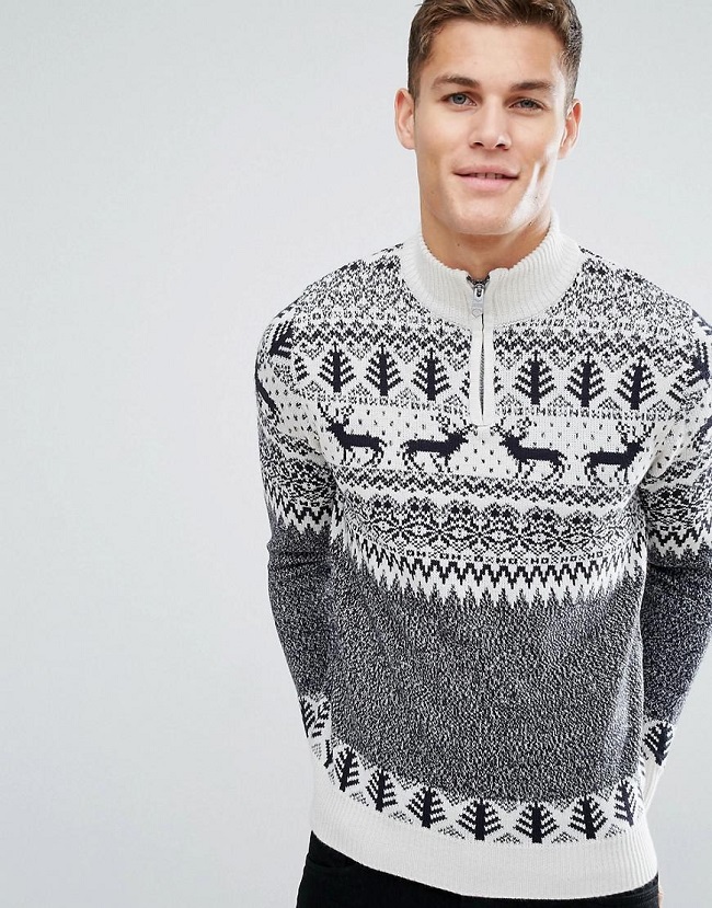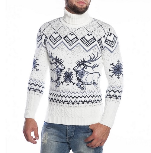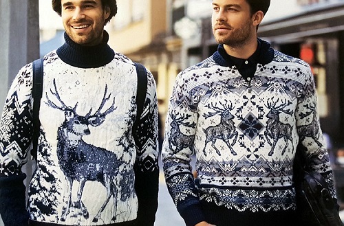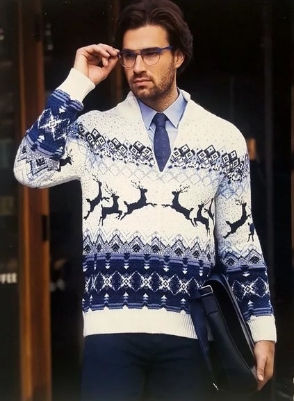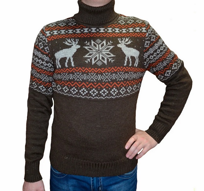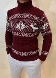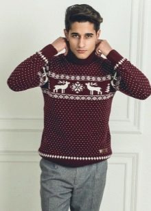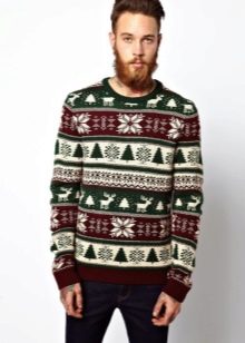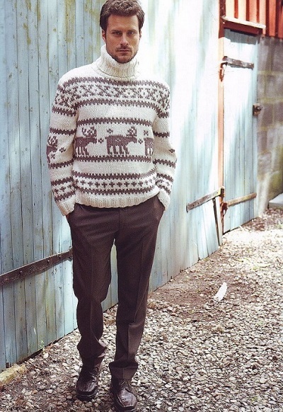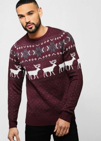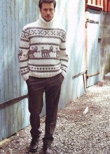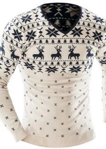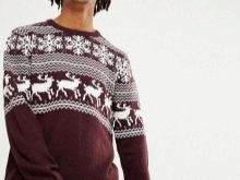 Le motif lui-même semble avantageux s'il est réalisé dans des couleurs contrastées. Cependant, il existe également des représentants de la moitié forte qui préfèrent les pulls avec des imprimés aux couleurs vives et extraordinaires avec des personnages de dessins animés situés au centre ou sur la poitrine.
