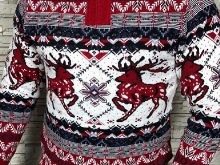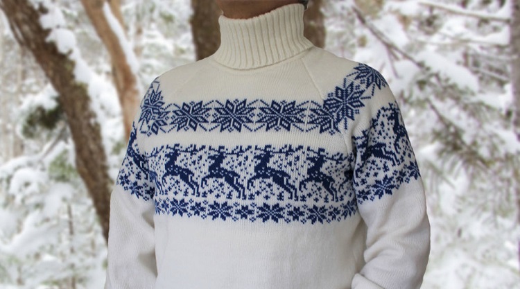 Initialement, le style scandinave classique du motif était une image de cerf dans une rangée horizontale, regardant dans une direction. L'imprimé était situé en haut du pull et des manches. Aujourd'hui, cette composition se compose non seulement de quelques animaux, mais est également complétée par des éléments familiers à l'hiver : flocons de neige, étoiles, sapins et autres images. Le motif peut être situé à la fois en haut et au centre ou en bas.