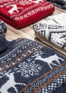 Pour les vacances, divers événements, vous pouvez choisir n'importe quelle couleur avec n'importe quel imprimé. Habituellement, ils préfèrent les modèles fabriqués dans des couleurs et des nuances scandinaves traditionnelles familières pour la période hivernale : du bleu clair et du vert pâle au bleu foncé et au brun.